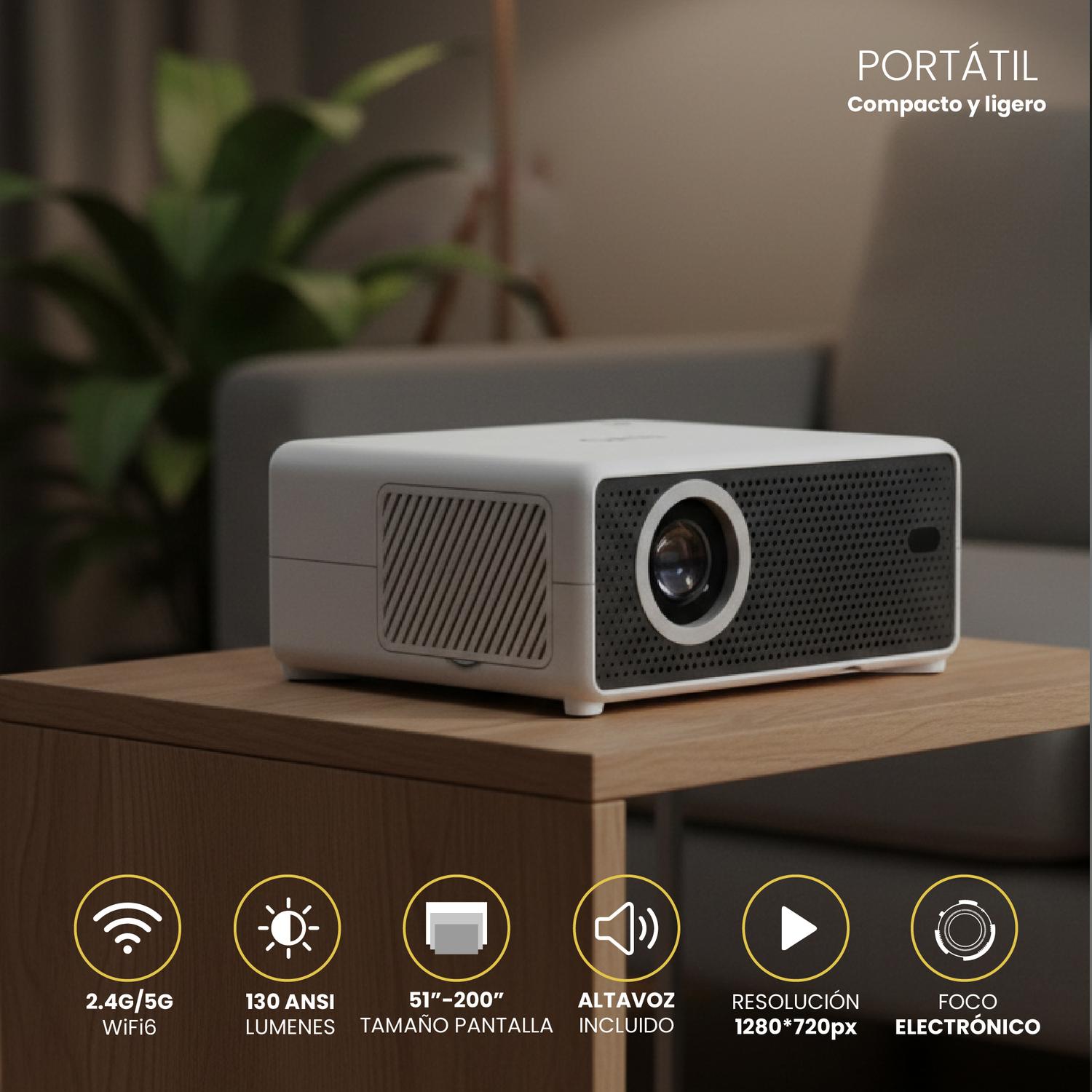 Transforma tu mundo en una pantalla gigante con el Proyector Portátil Smart Hexa 8000lm WiFi BT Android LEVO