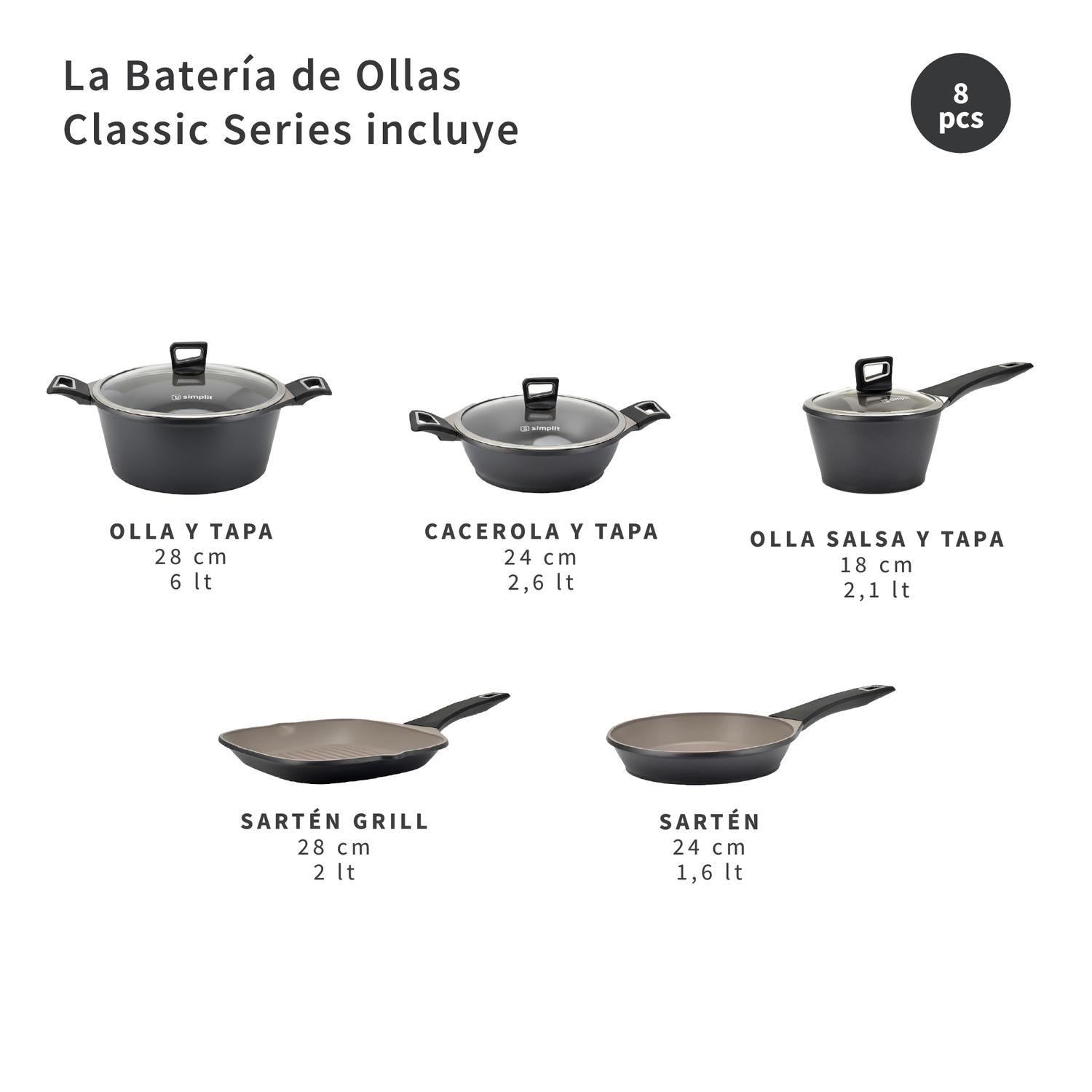 Batería de Cocina Antiadherente Classic 8 Piezas Simplit