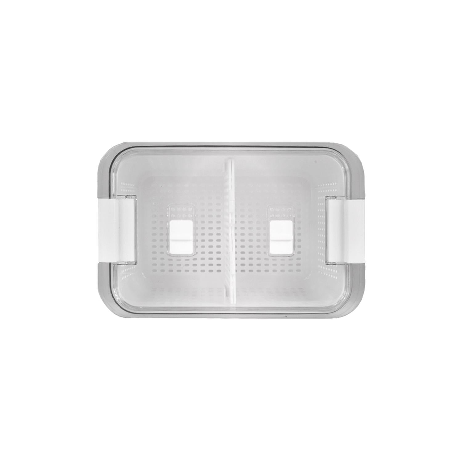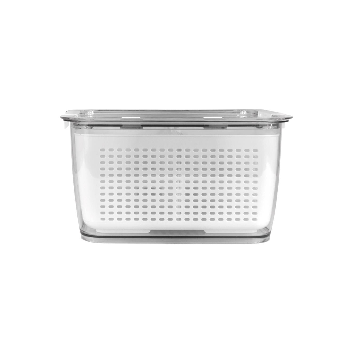 Además, la caja cuenta con una cesta interior que puedes usar como colador para lavar tus frutas/verduras y luego del lavado, lo puedes llevar directamente al refrigerador.