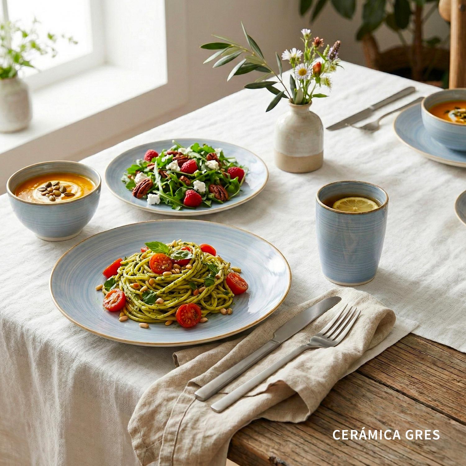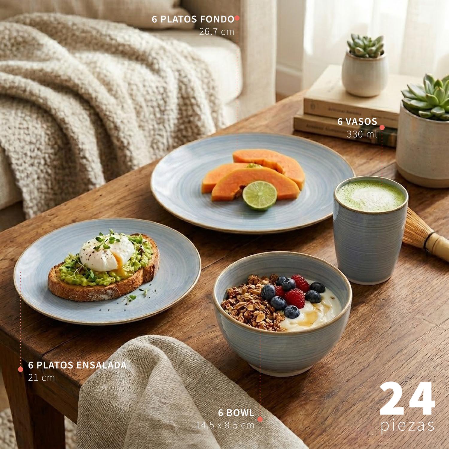 Juego de Loza 24 Piezas Cerámica Amalfi de Simplit: Elegancia y Serenidad para tu Mesa