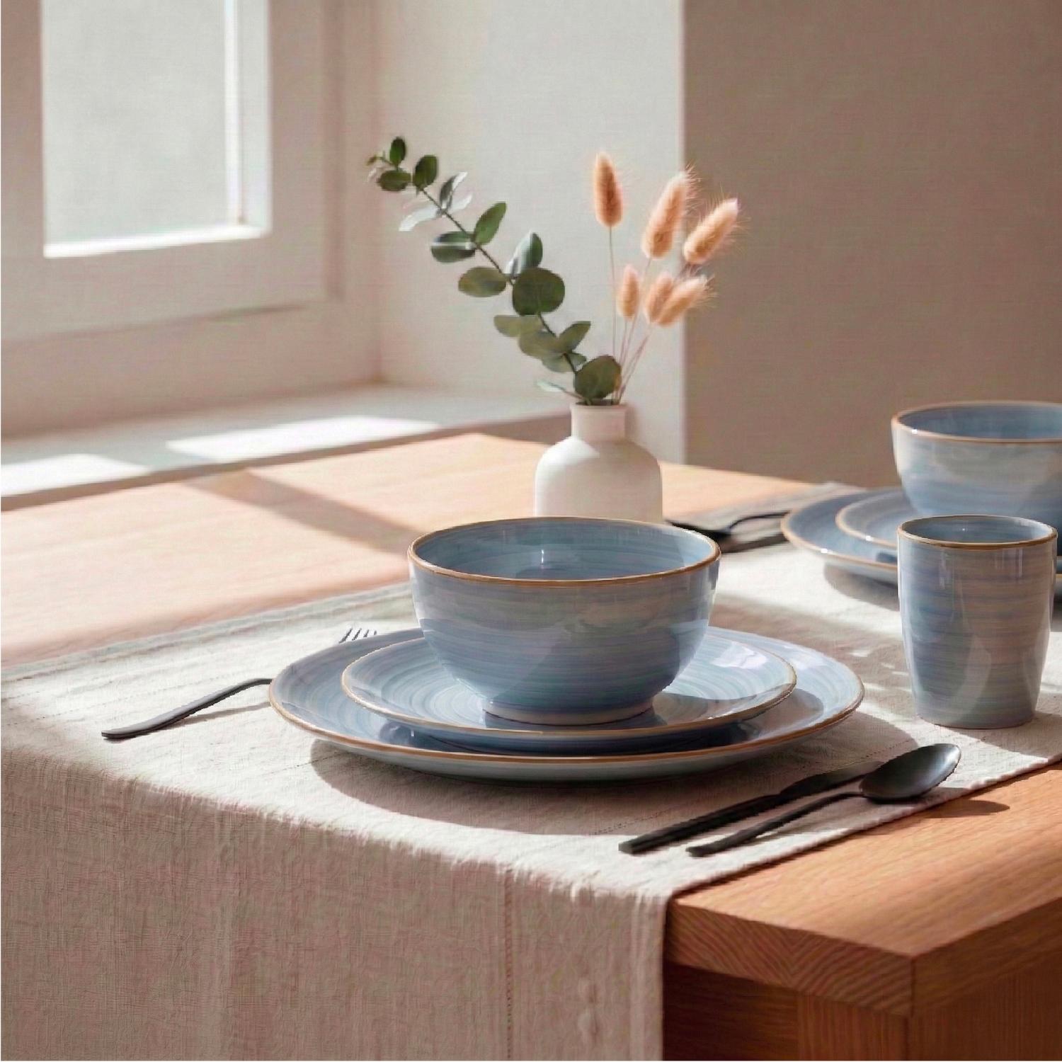 Renueva tus comidas con el juego de loza Amalfi , diseñado en un sofisticado color azul grisáceo que aporta calma y estilo a cualquier ocasión. Fabricado en cerámica gres de alta calidad, este conjunto combina durabilidad y belleza, ideal tanto para el uso diario como para momentos especiales.
