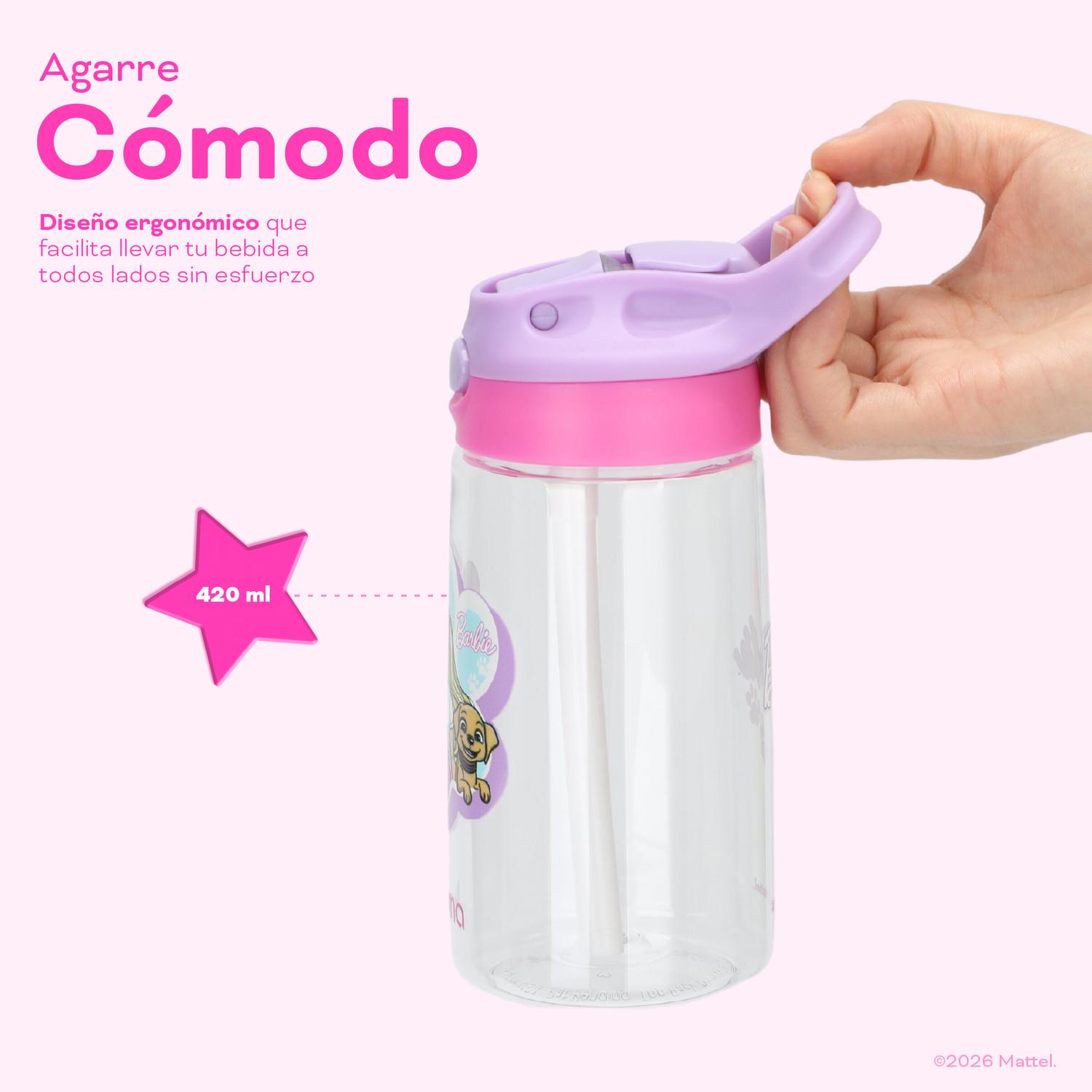 Botella Agua Niños Barbie & Pets 420ml con Bombilla UMA