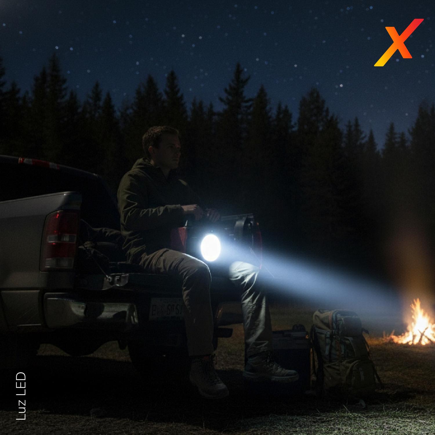 • Versatilidad de Conexión: Equipado con inversor de 220V AC, puertos USB de carga rápida y salida de 12V DC.