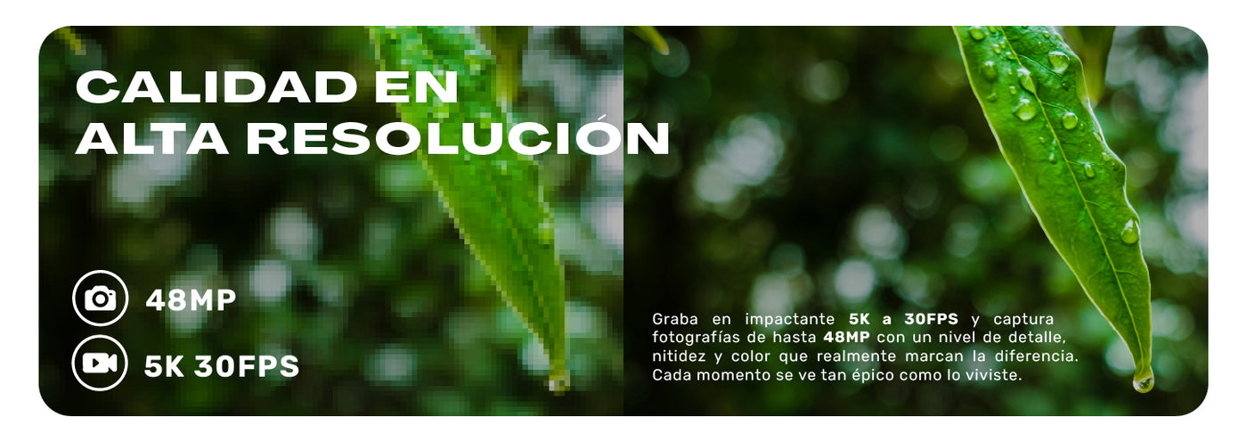 Calidad de imagen que impacta: Equipada con el poderoso sensor Sony IMX386 de 48 megapíxeles y grabación de video en asombroso 5K a 30fps. Inmortaliza tus mejores momentos con colores vibrantes, máxima nitidez y una estabilización electrónica (EIS) de 6 ejes para que tus tomas siempre salgan fluidas, sin importar los saltos o la velocidad.
