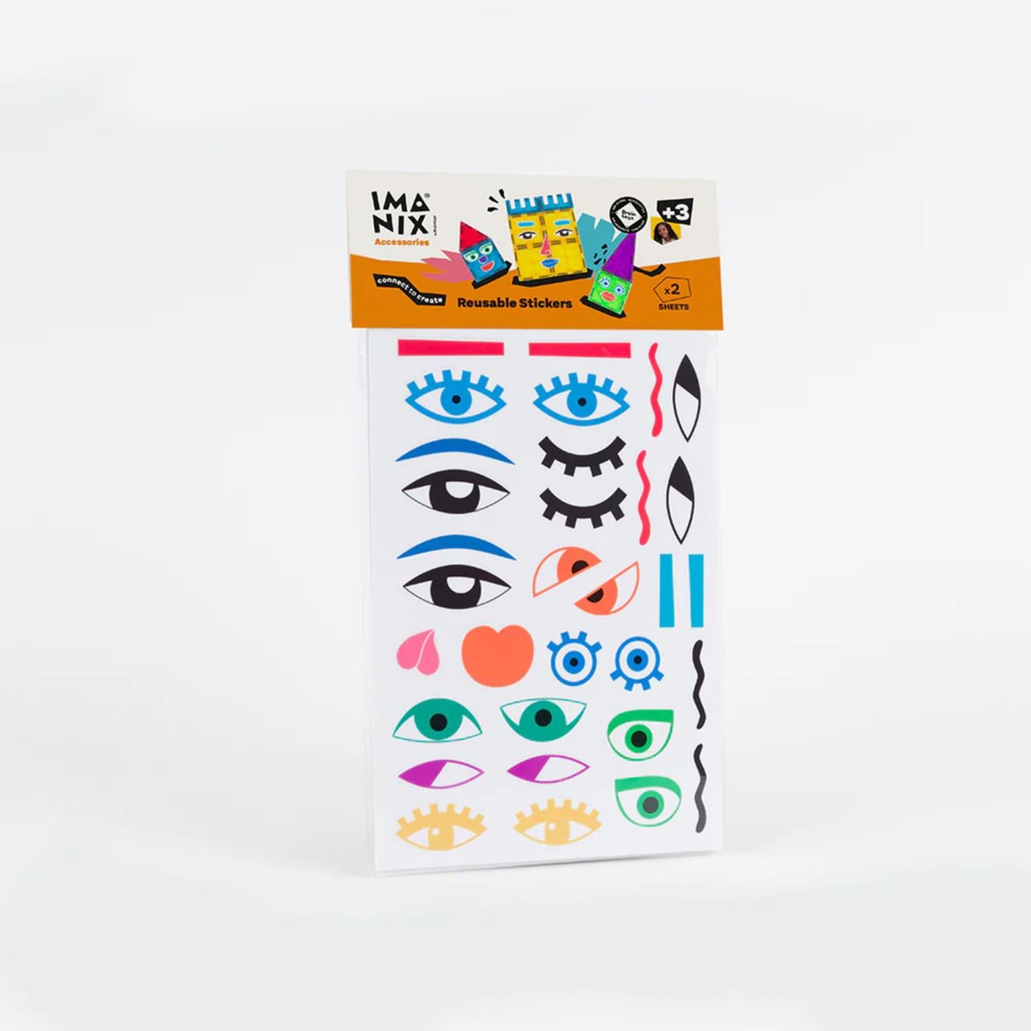 Rasgos faciales por aquí, expresiones por allá, variedad de colores y mucho más… Combina tus stickers reutilizables con tus IMANIX.