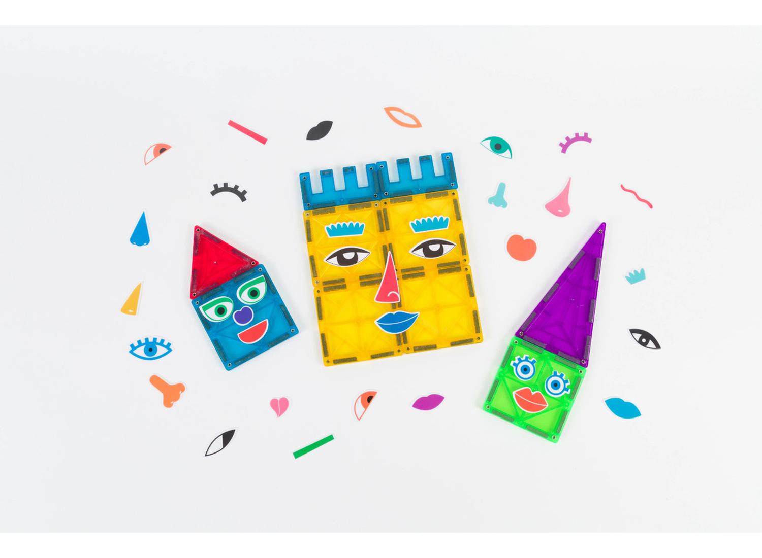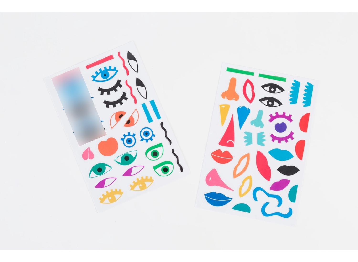 ¡Pega y despega cuantas veces quieras! Mezcla todas las figuras, rostros, ojos y narices para darle una personalidad propia a tu juego.